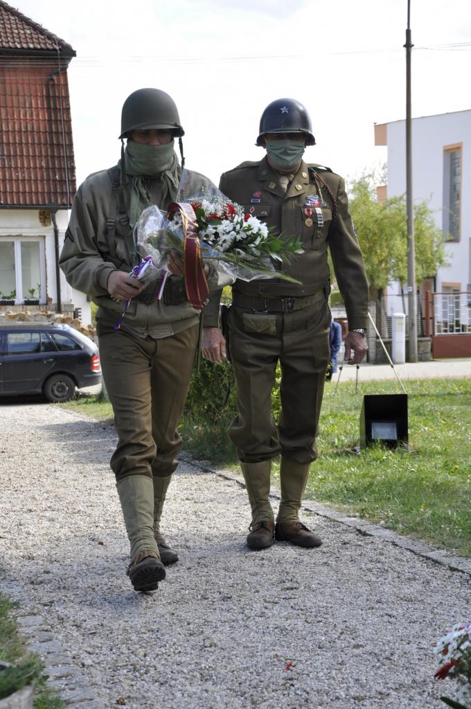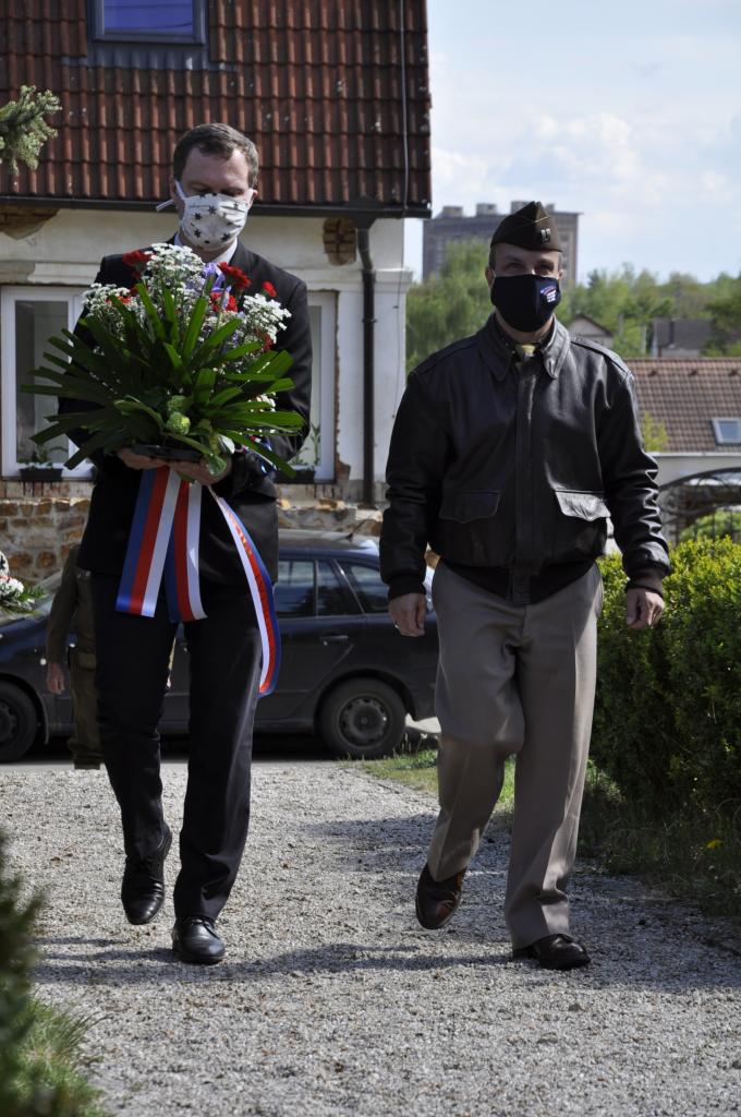 Po ukončení pietního aktu u pomníku gen. Pattona starosta obce ještě položil květiny k pomníkům gen. Harmona na Náměstí Míru v Dýšině a v Lesní ulici v Nové Huti.