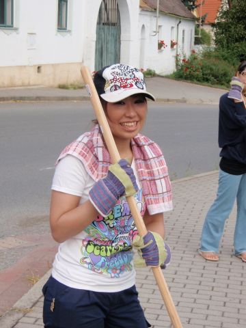 Studenti z celého světa, kteří od 25.8. 2009 pracují v naší obci v rámci dobrovolnického tábora, dobře doplnili chybějící zaměstnance technické čety, kteří jsou na dovolené, nebo jsou delší dobu v pracovní neschopnosti. Pracují zde druhý den a již je za nimi vidět kus práce. Včera, t.j. v úterý 25.8. začeli zastřihávat živé ploty v parku u bytových domů na Malém náměstí a dnes druhá skupina čistí chodníky v prostoru náměstí. Viz přiložené foto.